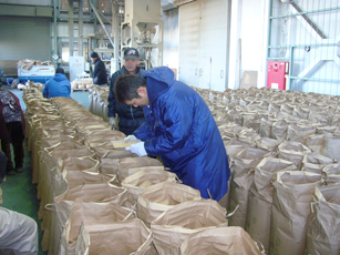 収穫後の大豆を乾燥、選粒、袋詰めを行った製品を、定期的に行われている検査会に持ち込み、検査をしていただき出荷(JAさんへ)します。